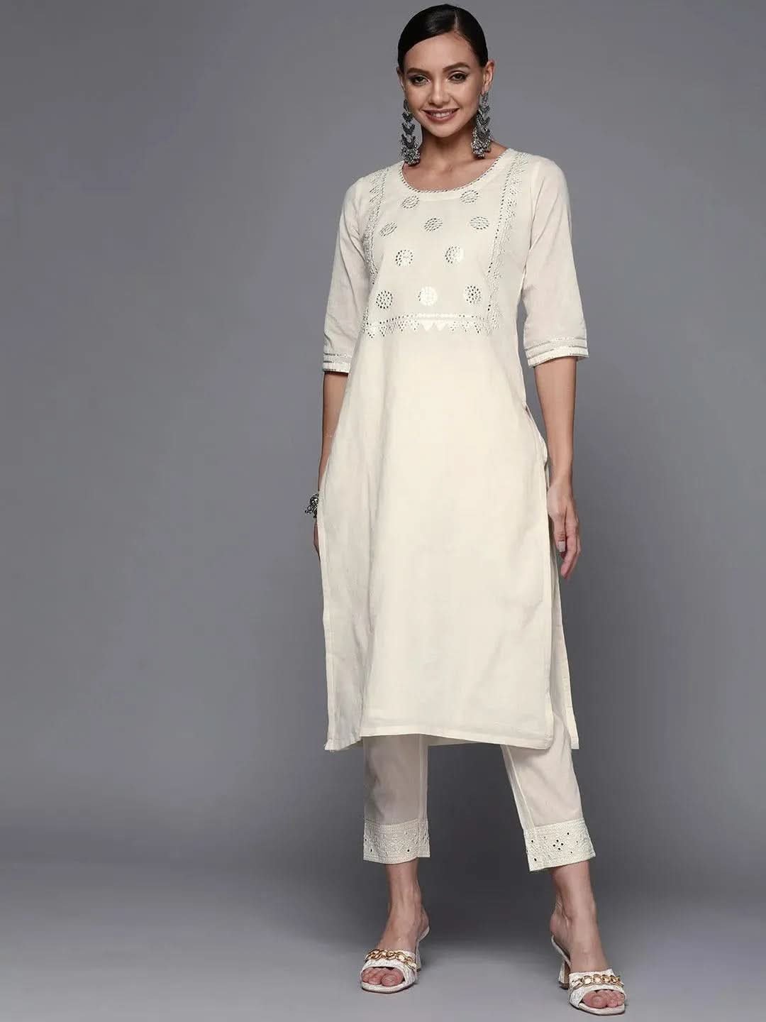 Off White Yoke Design Cotton Straight Kurta